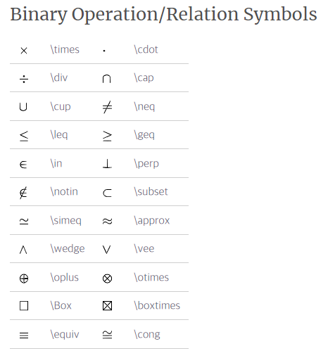 $< \quad > \quad \subset \quad \supset \quad \subseteq \quad \supseteq$
